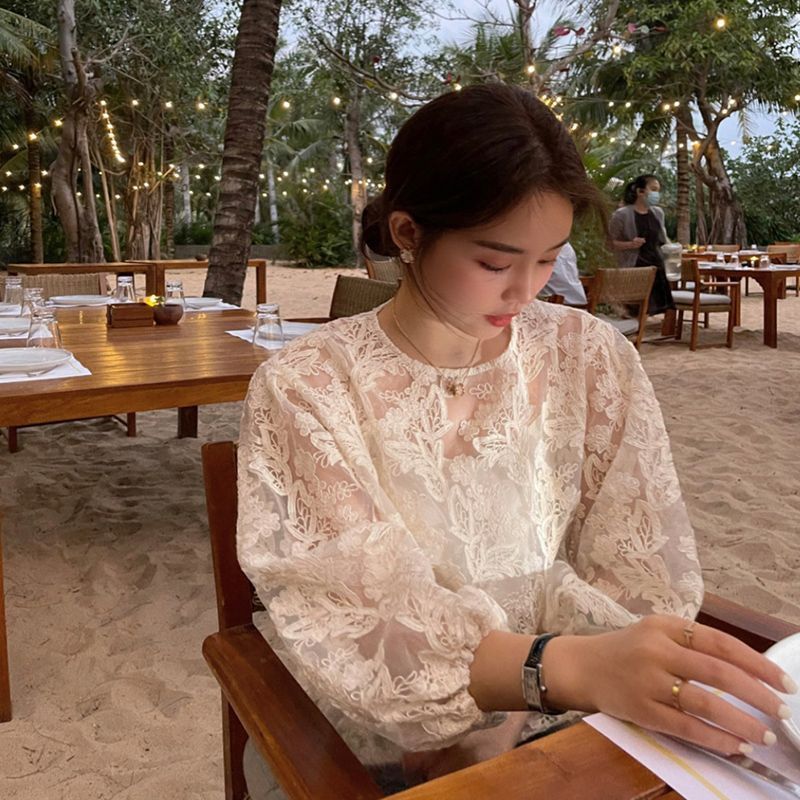 ✨ Détails : Dentelle raffinée, manches longues, col arrondi